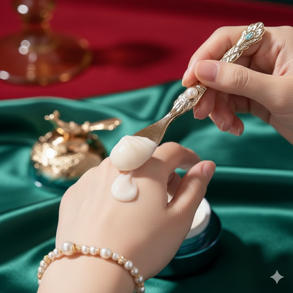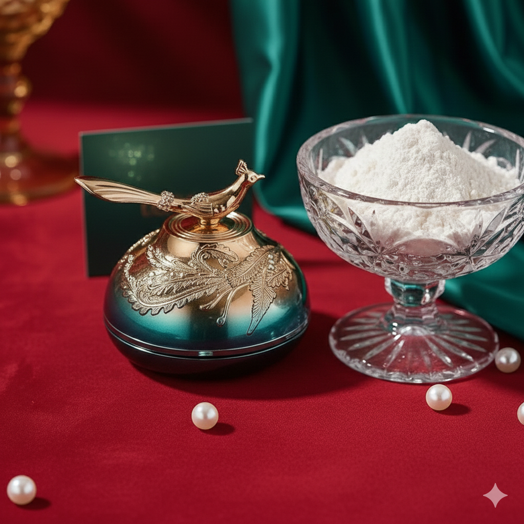 O Diferencial do Pó de Pérolas Nobres Enquanto cremes comuns apenas hidratam a superfície, as micropartículas de pérolas do Aura de Pérola penetram para regenerar a derme.