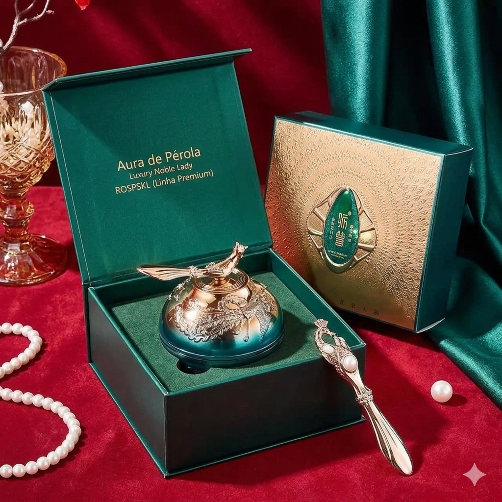 O "Creme Fada" que une o luxo do pó de pérolas nobres à praticidade do efeito primer para uma transformação radiante em segundos. Inspirado na opulência das rainhas, o Aura de Pérola Luxury Noble Lady não é apenas um hidratante, é um elixir de beleza que redefine o conceito de skincare.