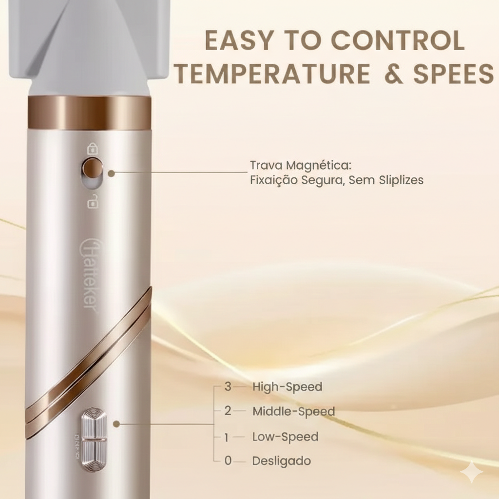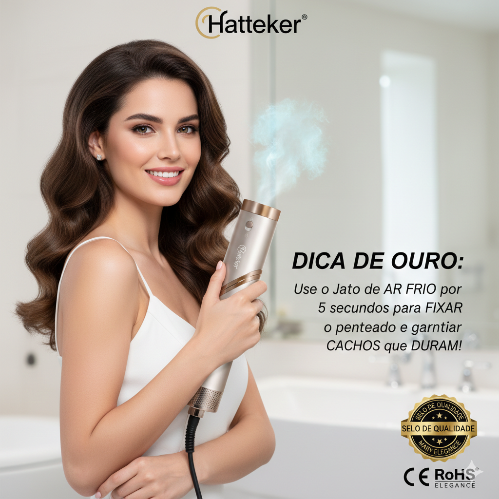 🧲 Envoltório Automático Magnético: Você não precisa girar o pulso. O fluxo de ar atrai a mecha e a envolve sozinha no modelador. Cachos perfeitos em segundos!