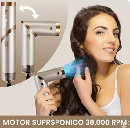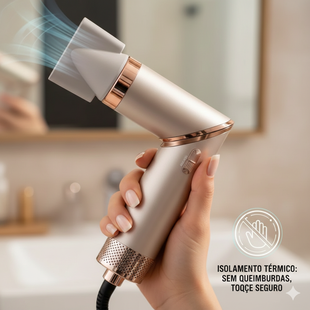 🚀 Motor Supersônico 38.000 RPM: Uma potência absurda de mais de 2.000W que seca o cabelo em tempo recorde, usando a velocidade do vento em vez de calor excessivo.