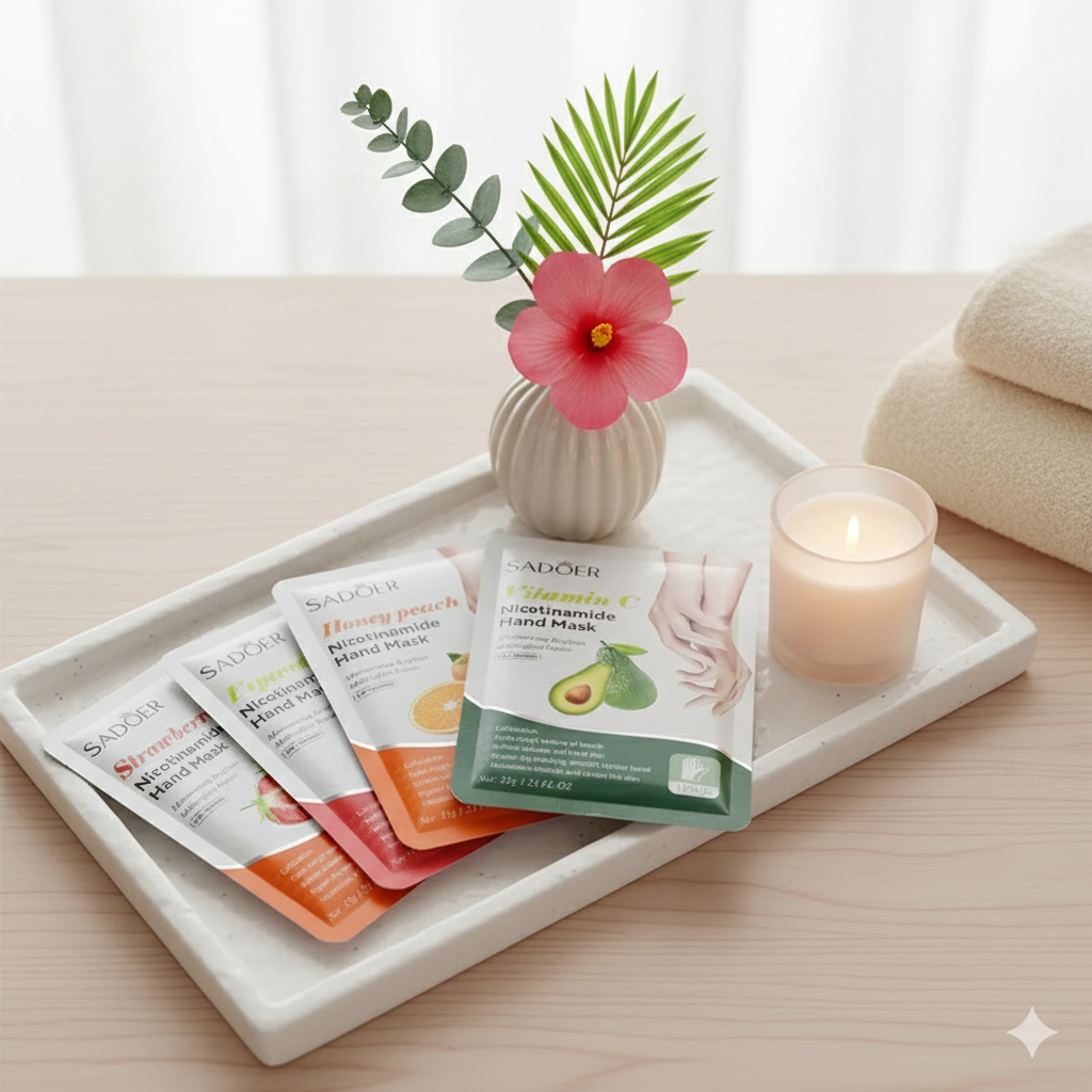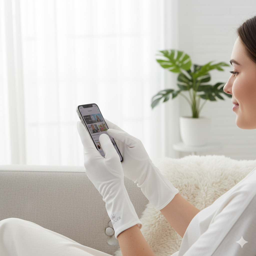 A revolução do "Skincare para as Mãos" em formato de luvas inteligentes que hidratam, clareiam manchas e eliminam calosidades com o poder da Nicotinamida. O Kit Mãos de Seda da SADOER traz o Spa Profissional para o conforto da sua casa. Esqueça os cremes que deixam tudo pegajoso: aqui você veste o cuidado, continua usando seu celular normalmente e desperta com mãos visivelmente mais jovens e suaves.