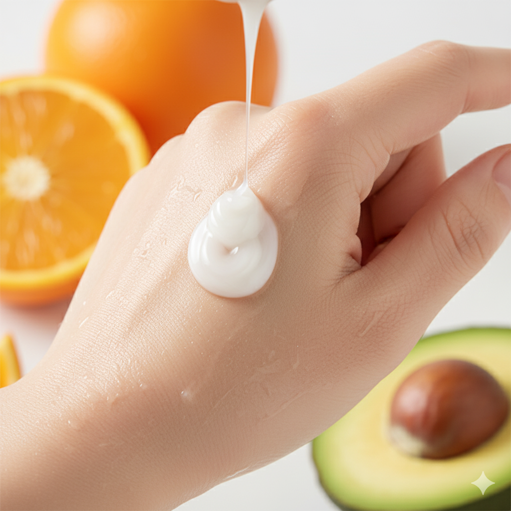 ✨ Ação Clareadora: A Vitamina C e a Nicotinamida (B3) atuam juntas para suavizar manchas senis e uniformizar o tom da pele.