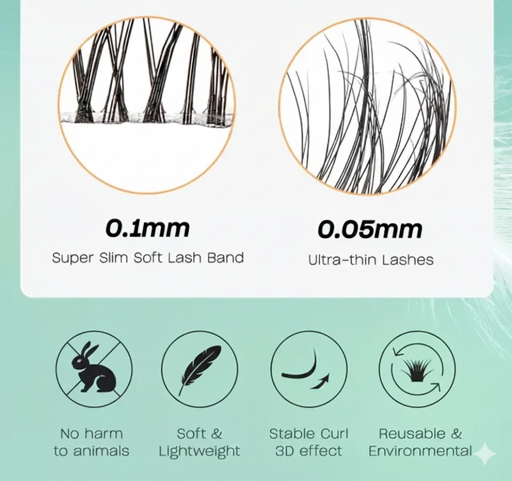 A revolução dos cílios em cluster com tecnologia Silk PBT: cerdas ultrafinas de 0.05mm que garantem um volume 3D profissional sem peso e sem danos aos seus fios naturais.