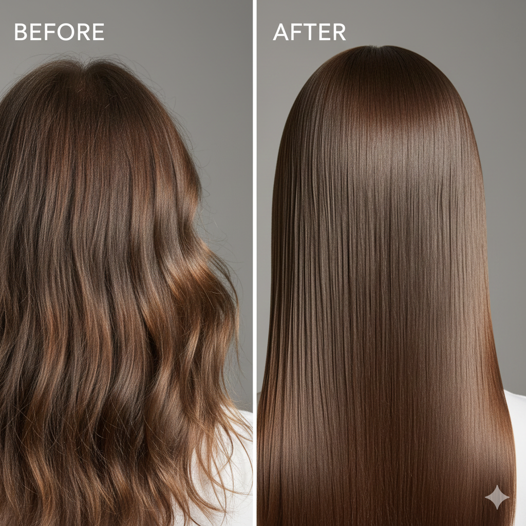 Ação Anti-Frizz: Sela as cutículas abertas, mantendo o cabelo alinhado por muito mais tempo.