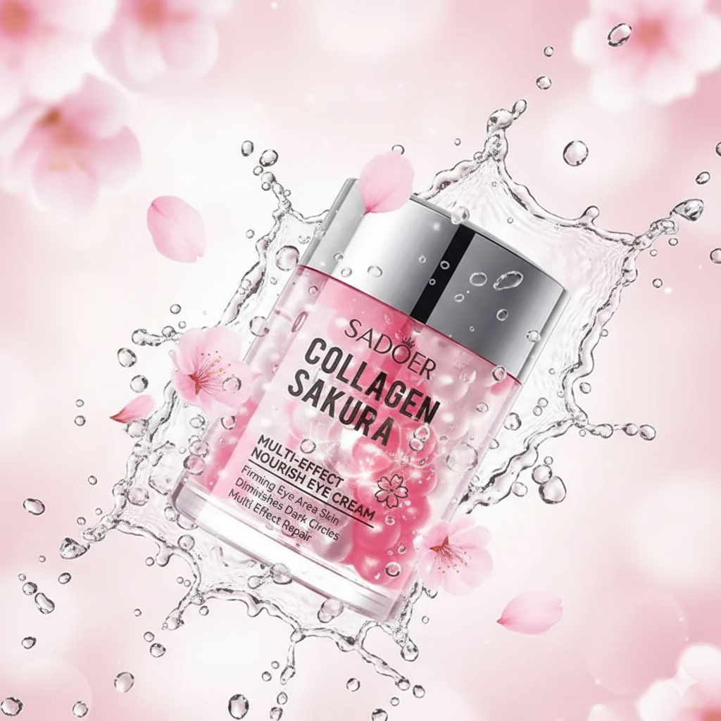 A tecnologia de esferas revitalizantes que derrete na pele, apagando olheiras e suavizando rugas com o frescor da primavera coreana. O Sakura Collagen da SADOER não é apenas um hidratante comum; é um banquete tecnológico para a área mais delicada do seu rosto.