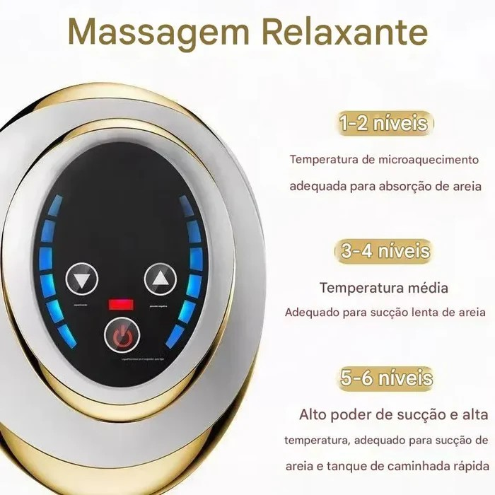 Ação 3 em 1 Poderosa: Combina ventosa, compressa quente e raspagem (Gua Sha) para resultados estéticos e terapêuticos.