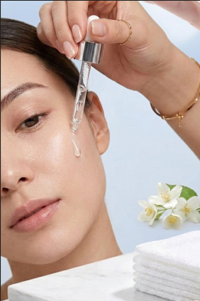 Com o rosto limpo e seco, aplique de 3 a 5 gotas do Sérum Lumina Rice.