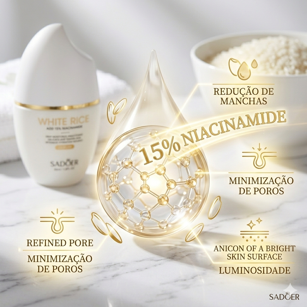 Ativos Principais: Extrato de Arroz Branco e 15% Niacinamida.